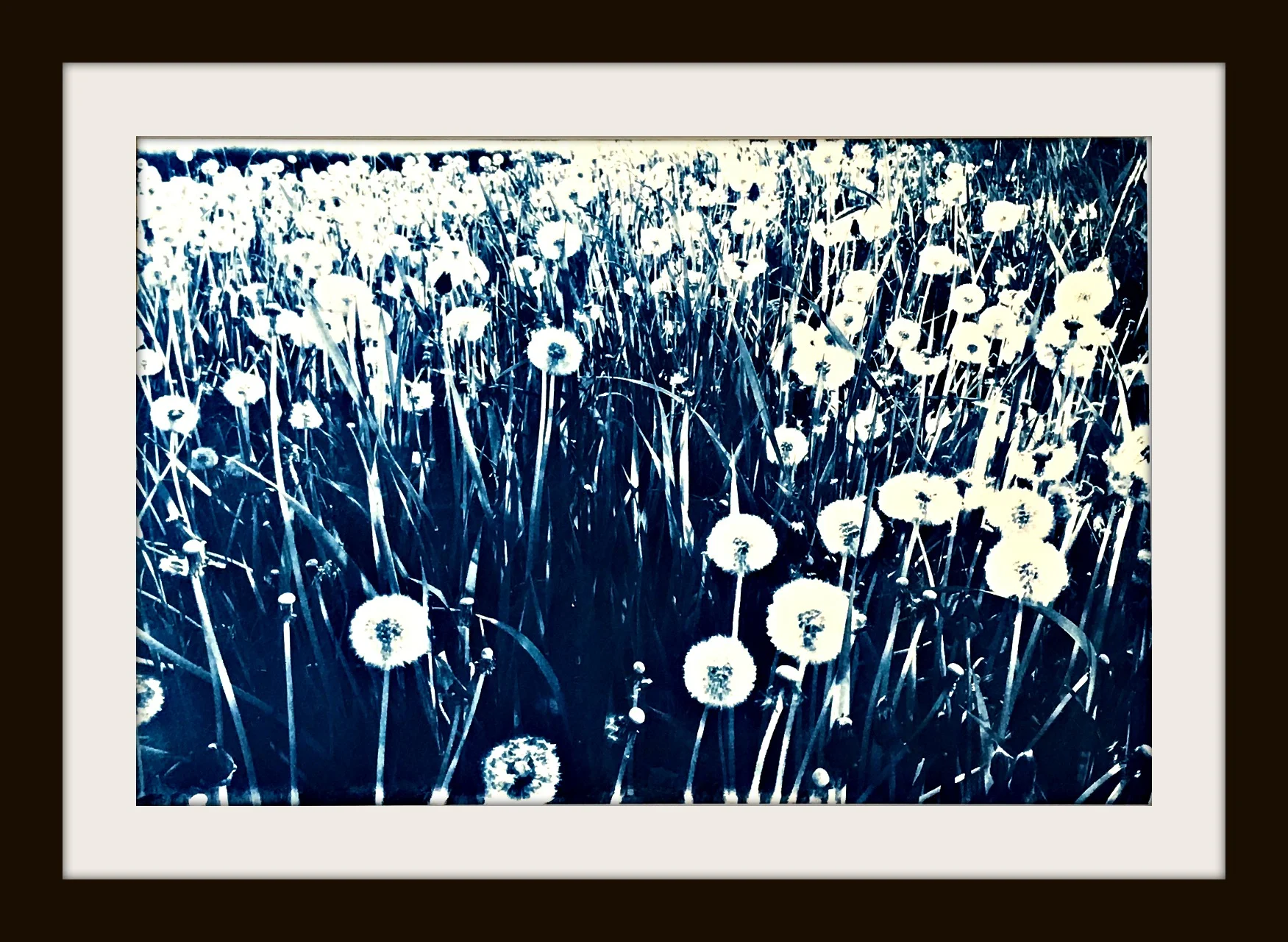 The images on this page are a happy marriage between the old (traditional cyanotype formulas and processing) and the new (digital photos, made into transparencies). All images were contact printed onto treated watercolor paper.